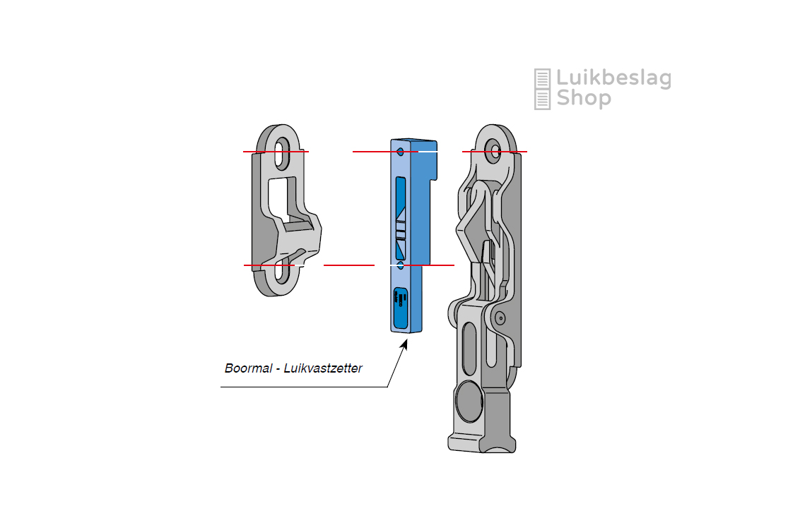 De vastzetter heeft 25mm ruimte nodig achter het luik. De afstand kan worden vergroot door vulplaatjes onder de vastzetter te plaatsen. De verborgen luikvastzetter kan ook dienen als (vouw)luikkoppeling. Het is belangrijk de 2 delen van de vastzetter op goede hoogte t.o.v. elkaar te monteren. Zie daarvoor de maten op de afbeelding in de galerij. Als u veel luikvastzetters gaat monteren kunt u een boormal gebruiken. Montagemateriaal: De vastzetter wordt geleverd met pluggen en schroeven (zwart verzinkt). Voor afmetingen zie de foto in de galerij. Informatiecentrum. Kijk voor meer informatie kijk in ons informatiecentrum hier.
