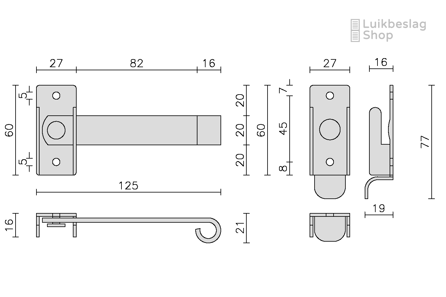 Meer informatie: Dit is een veel toegepaste strakke sluiting. Hij heeft een beperkte hoogte van ca 20mm waardoor hij goed is toe te passen bij vouwluiken of overlappende luiken. Het is niet mogelijk om een sluitlat achter de sluiting te plaatsen. Montagemateriaal: Er moeten 4 schroeven worden gebruikt om de sluiting te monteren. Het mooiste is natuurlijk om de rvs zwarte schroeven te gebruiken. Informatiecentrum. Kijk voor meer informatie en montagemogelijkheden in het informatiecentrum hier.