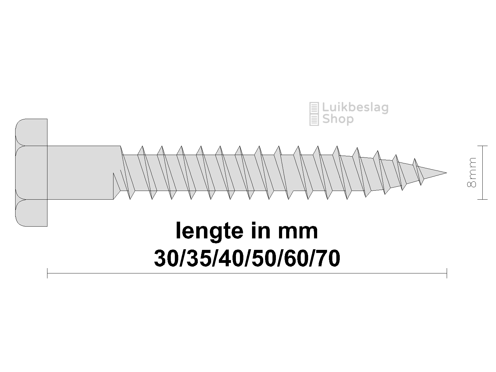 Lengte 30, 35, 40, 50, 60 en 70mm.