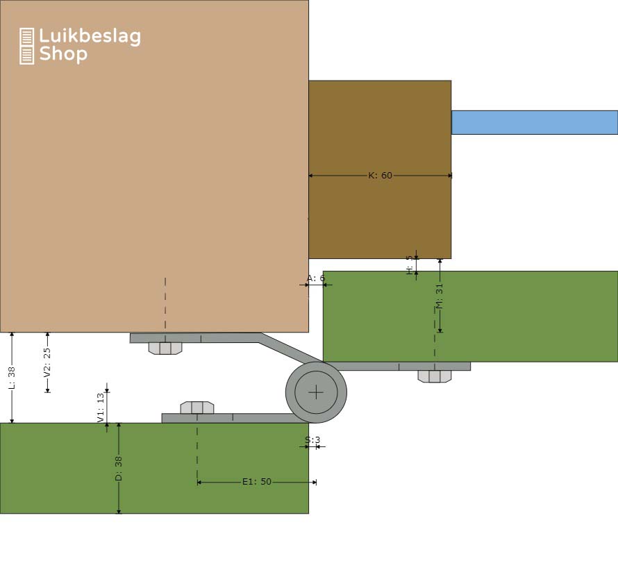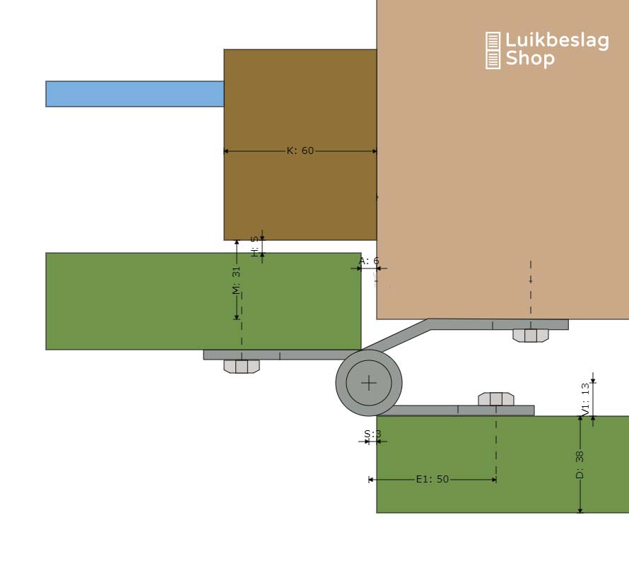 Om beschadigingen van de poedercoat te voorkomen is het aan te bevelen een kunststof beschermringetje te gebruiken onder de houtdraadbout. De plaatduimen zijn door de vorm van de gaten enkele millimeters verticaal te verstellen.