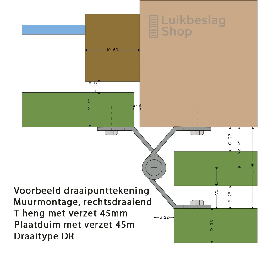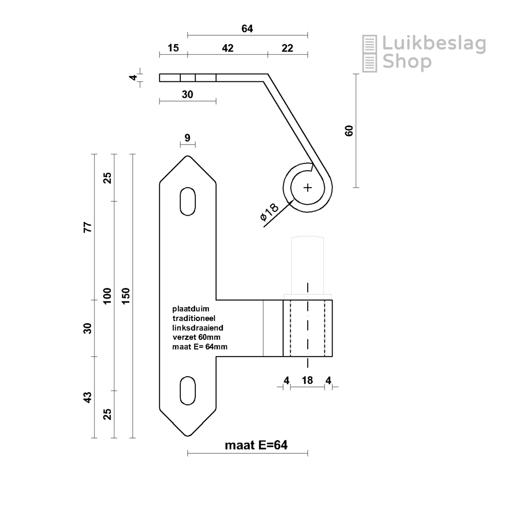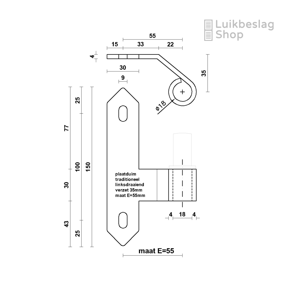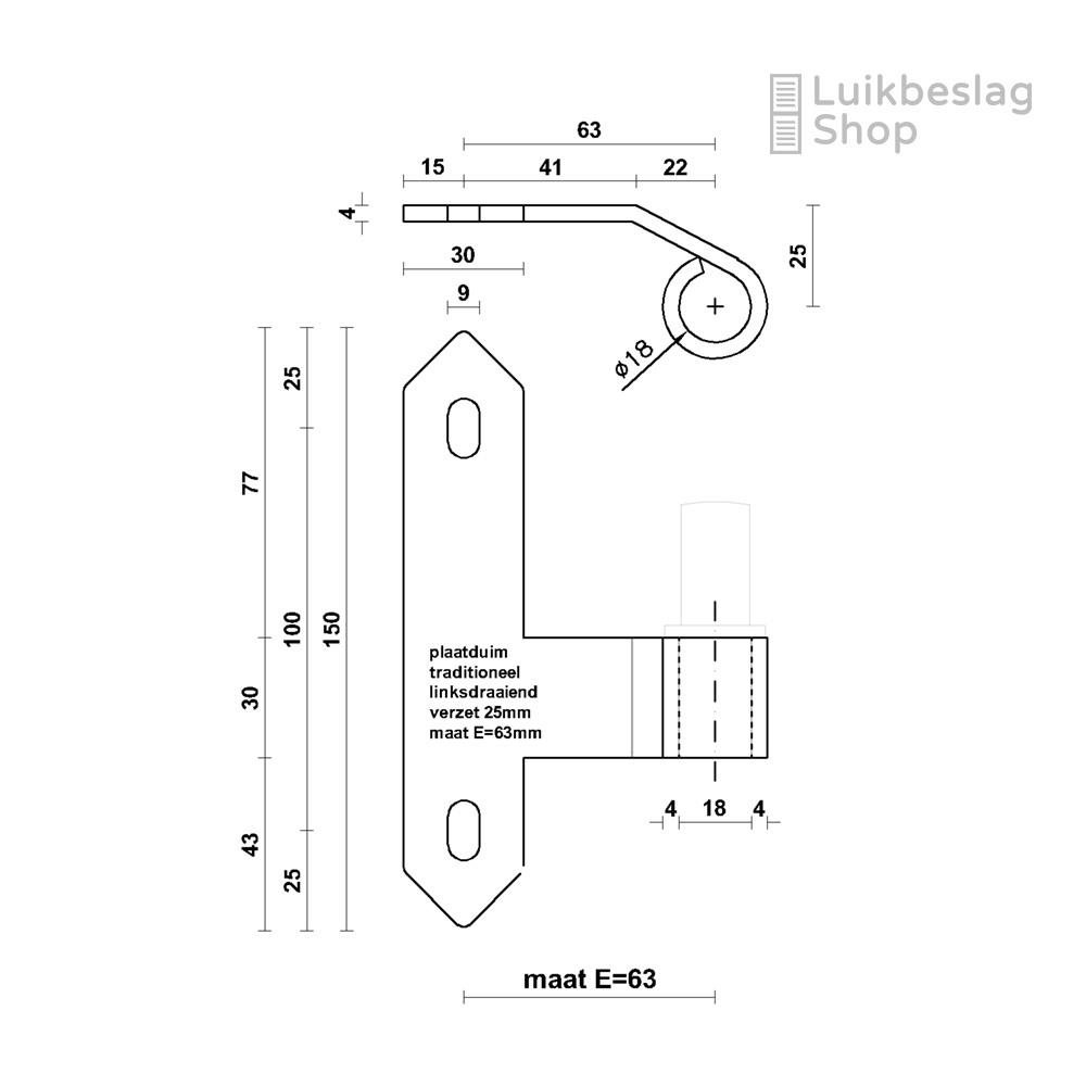 De traditionele plaatduim is te gebruiken voor muurmontage en dient gecombineerd te worden met de kunststof duimstift artikel 00-02-01.