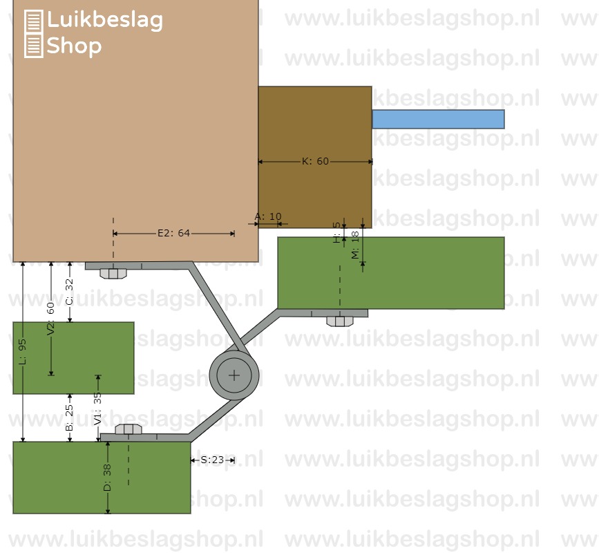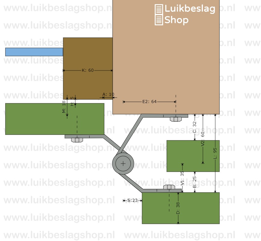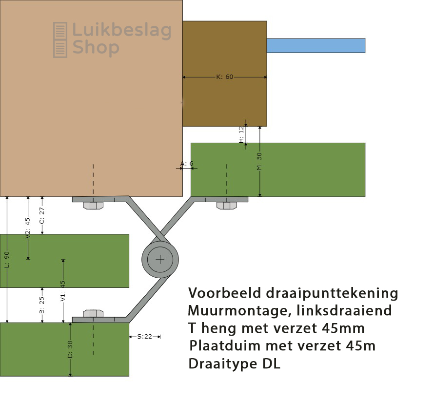 De montagegaten zijn 9mm. Er kunnen M8 houtdraadbouten worden gebruikt om de plaatduimen te monteren. Meestal is een lengte van 60mm voldoende. U gebruikt hiervoor het beste een plug van 12mm.