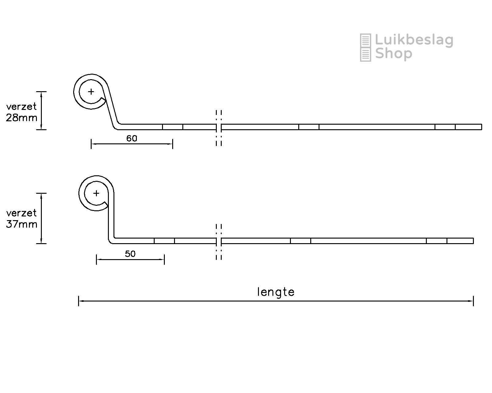 Naast de standaard verzetten van 28 en 37mm kunnen wij ook andere verzetten maken en leveren.