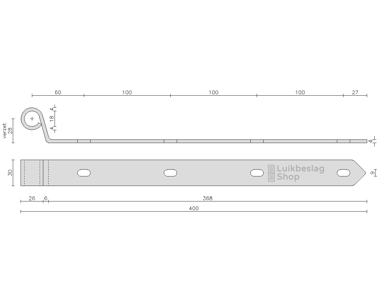 De montagegaten van deze traditionele staarthengen zijn 9mm. Er kunnen M8 houtdraadbouten of slotbouten worden gebruikt om de hengen te monteren.