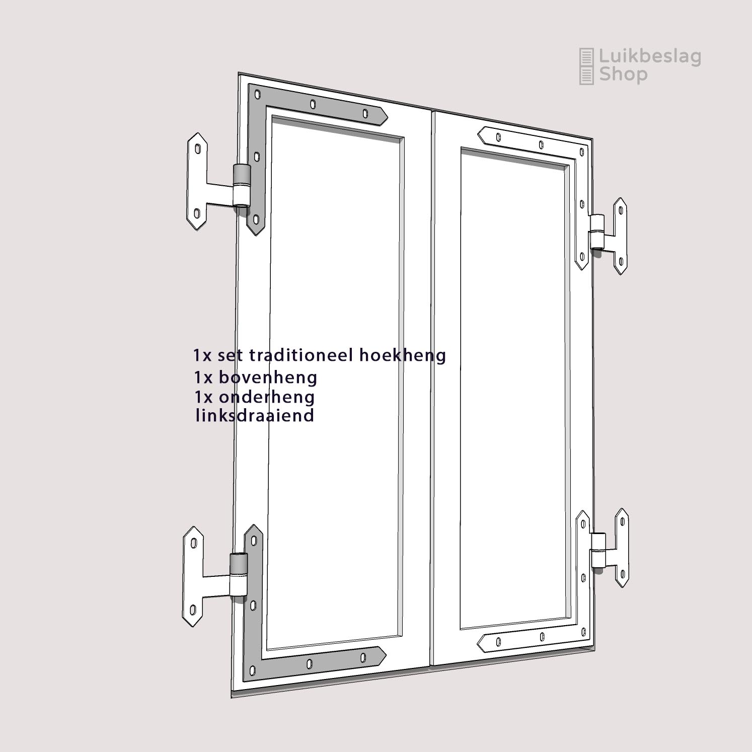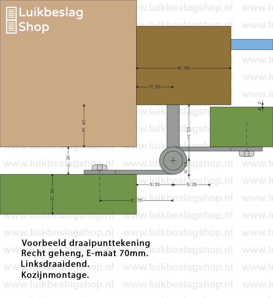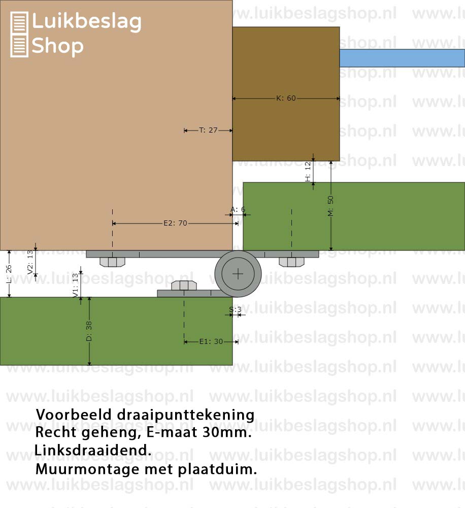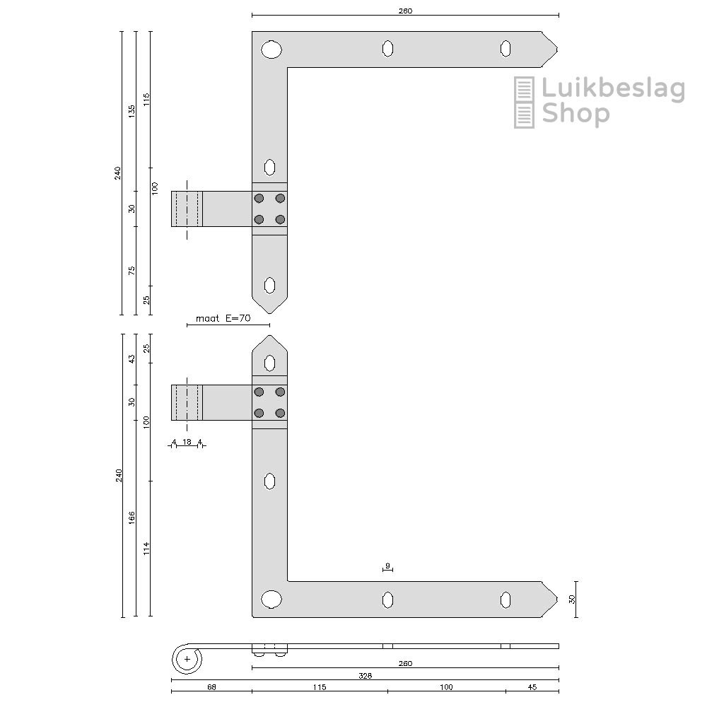 De montagegaten zijn 9mm. Er kunnen M8 houtdraadbouten of slotbouten worden gebruikt om de hengen te monteren.