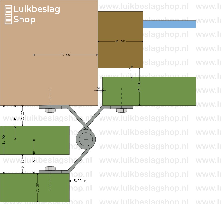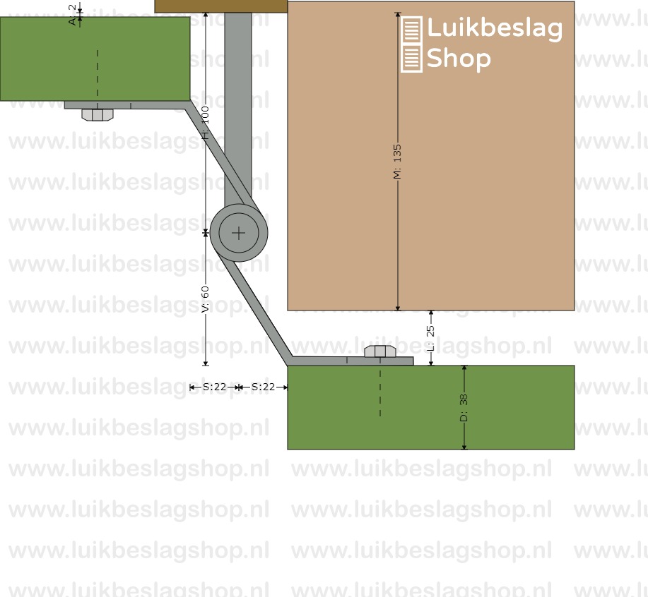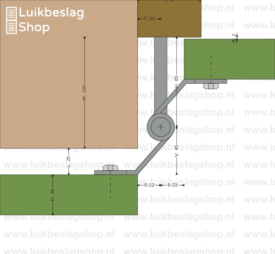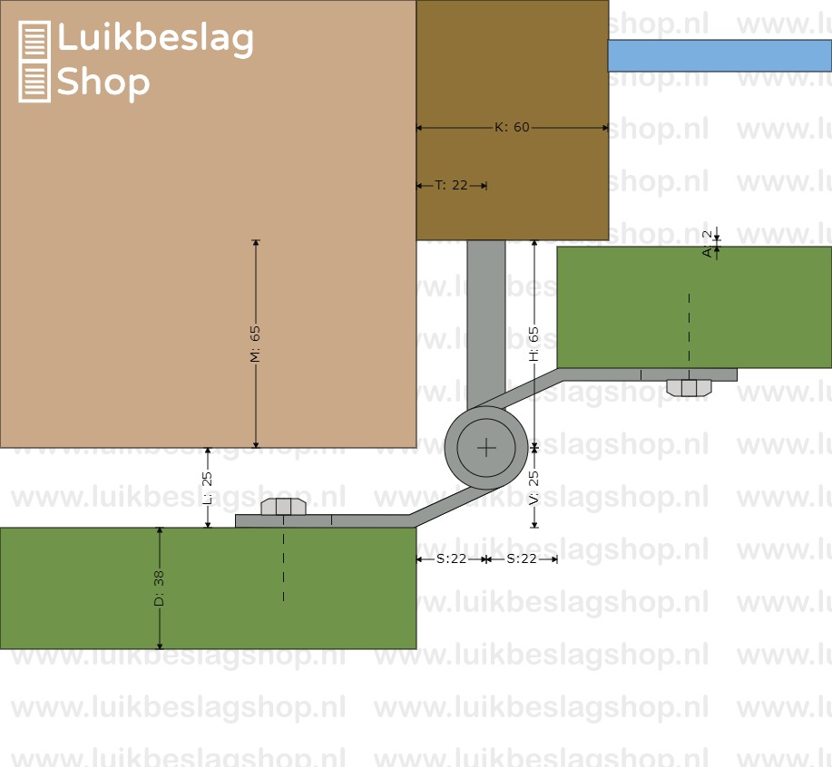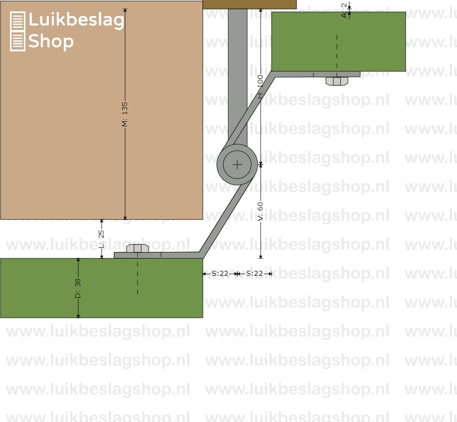 Om beschadigingen van de poedercoat te voorkomen is het aan te bevelen een kunststof beschermringetje te gebruiken onder de houtdraadbout of slotbout. De hengen zijn door de vorm van de gaten enkele millimeters verticaal te verstellen.