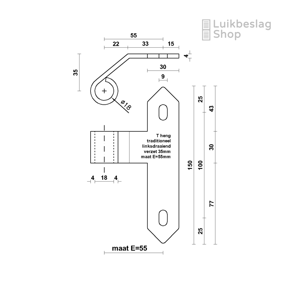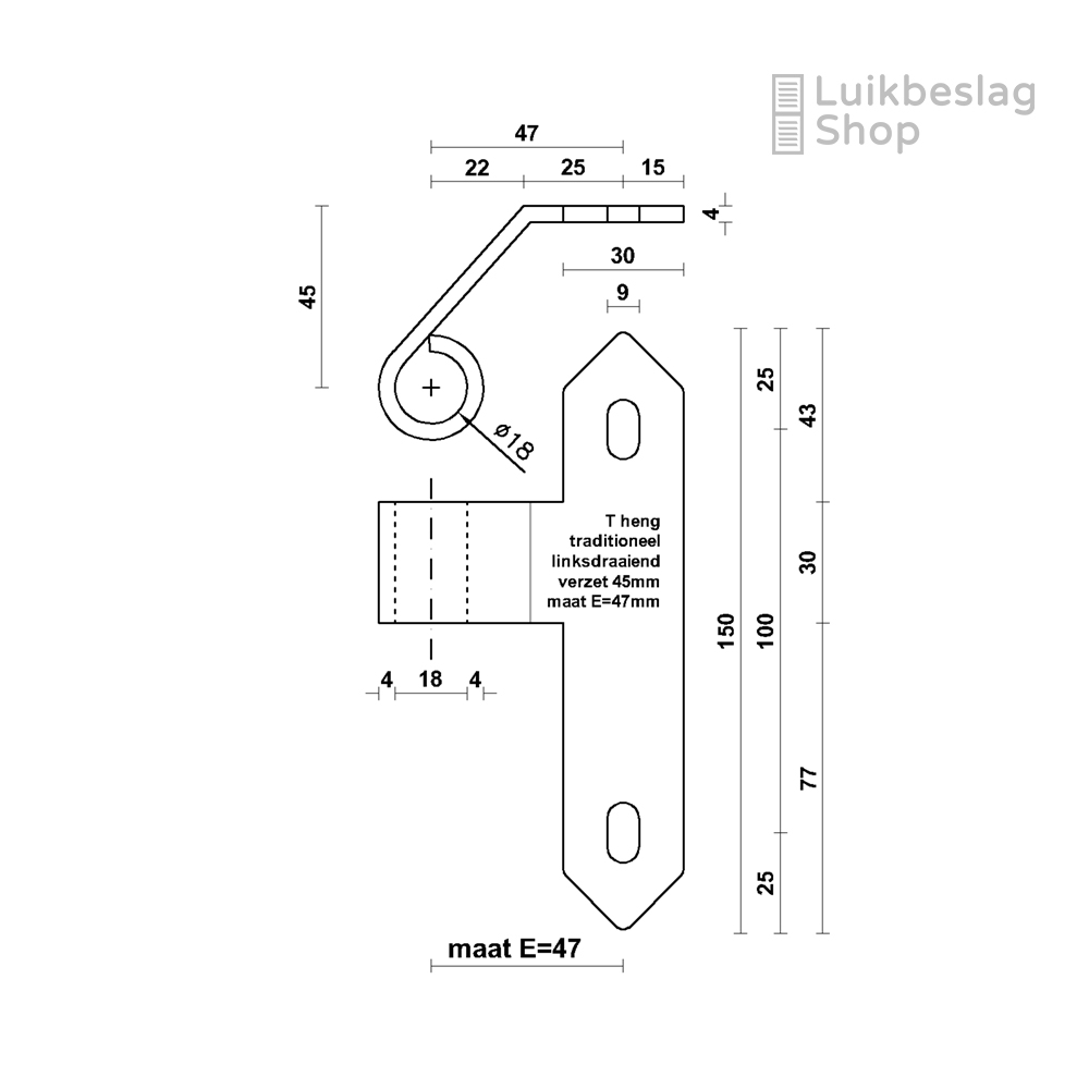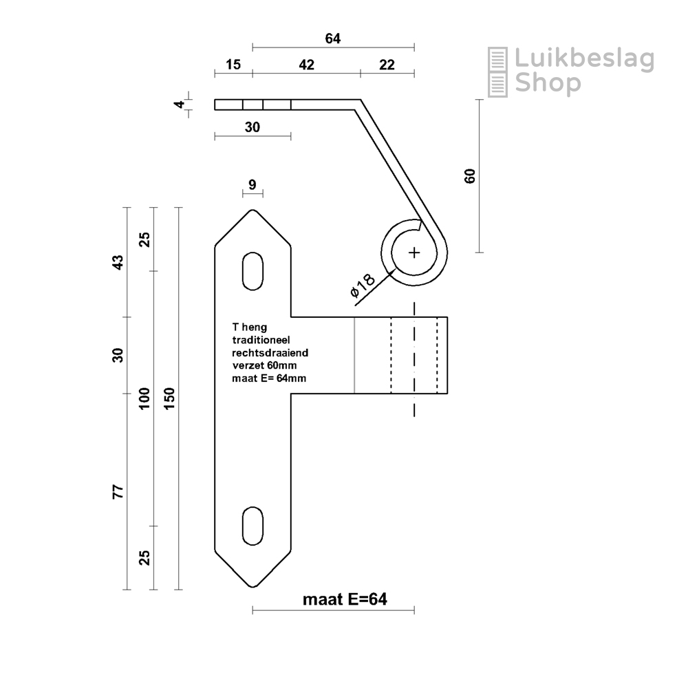 De montagegaten van deze traditionele T hengen zijn 9mm. Er kunnen M8 houtdraadbouten of slotbouten worden gebruikt om de hengen te monteren.