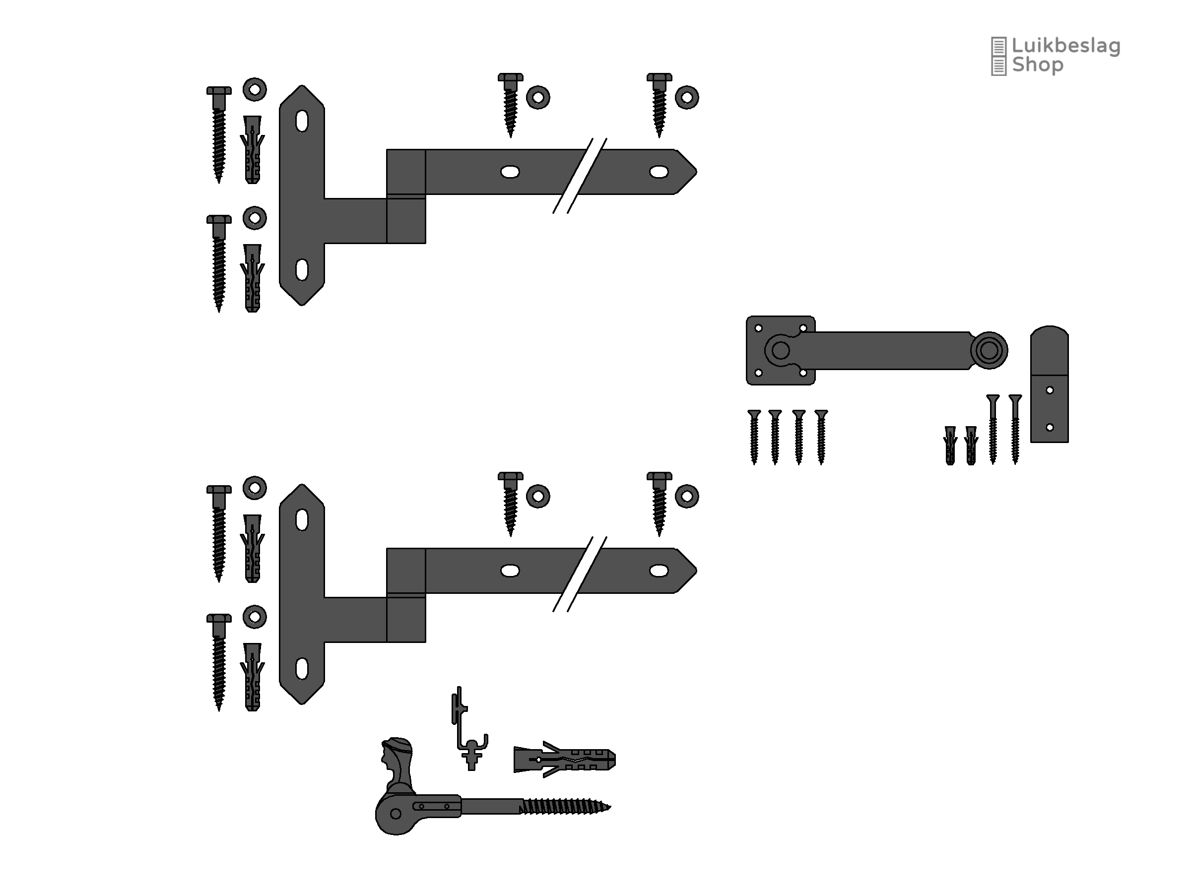 Wilt u andere luikvastzetters, luiksluitingen, T hengen in plaats van staarthengen of 3 draaipunten in plaats van 2? Gebruik dan de keuze hulp in de webshop.