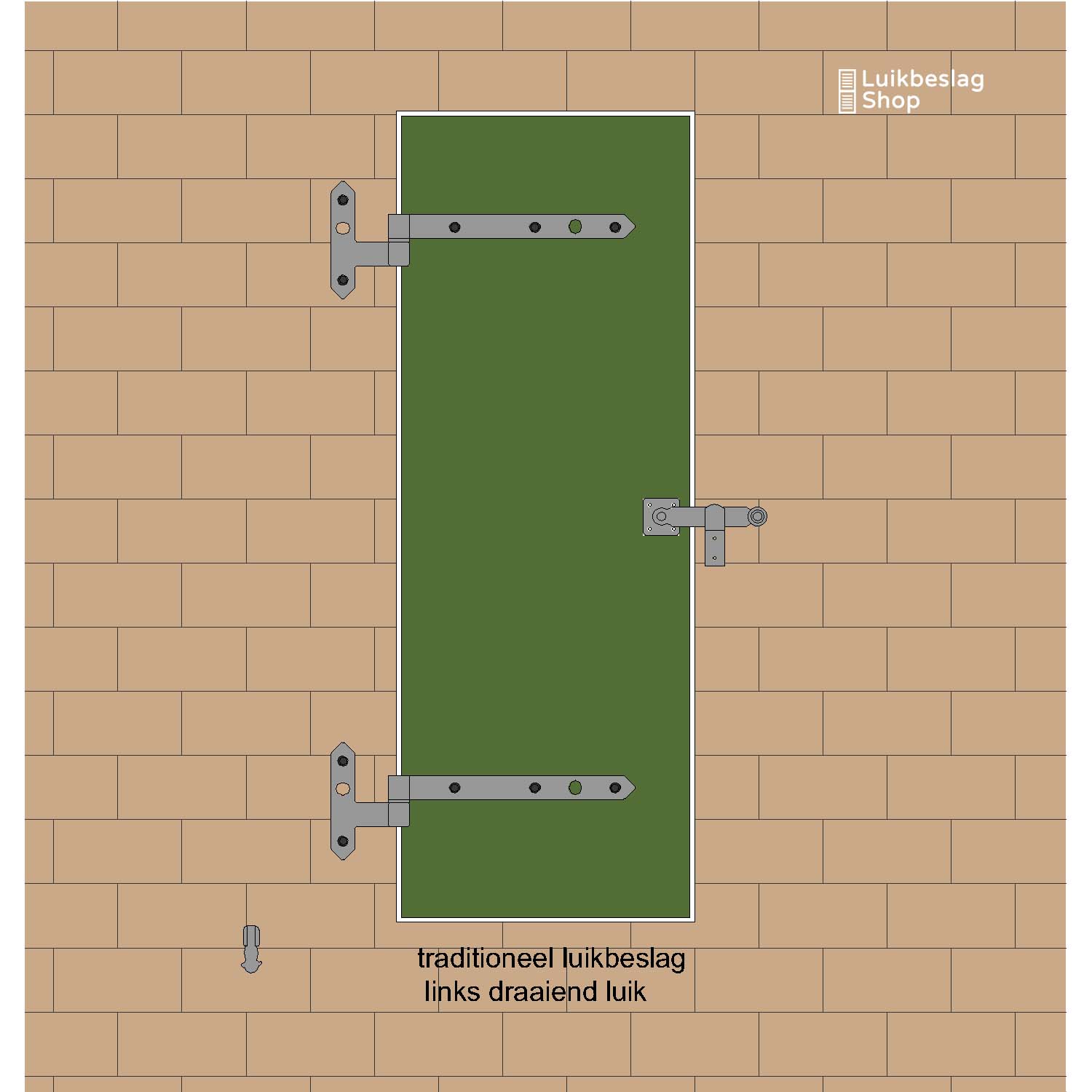 set traditioneel luikbeslag enkel luik staartheng linksdraaiend