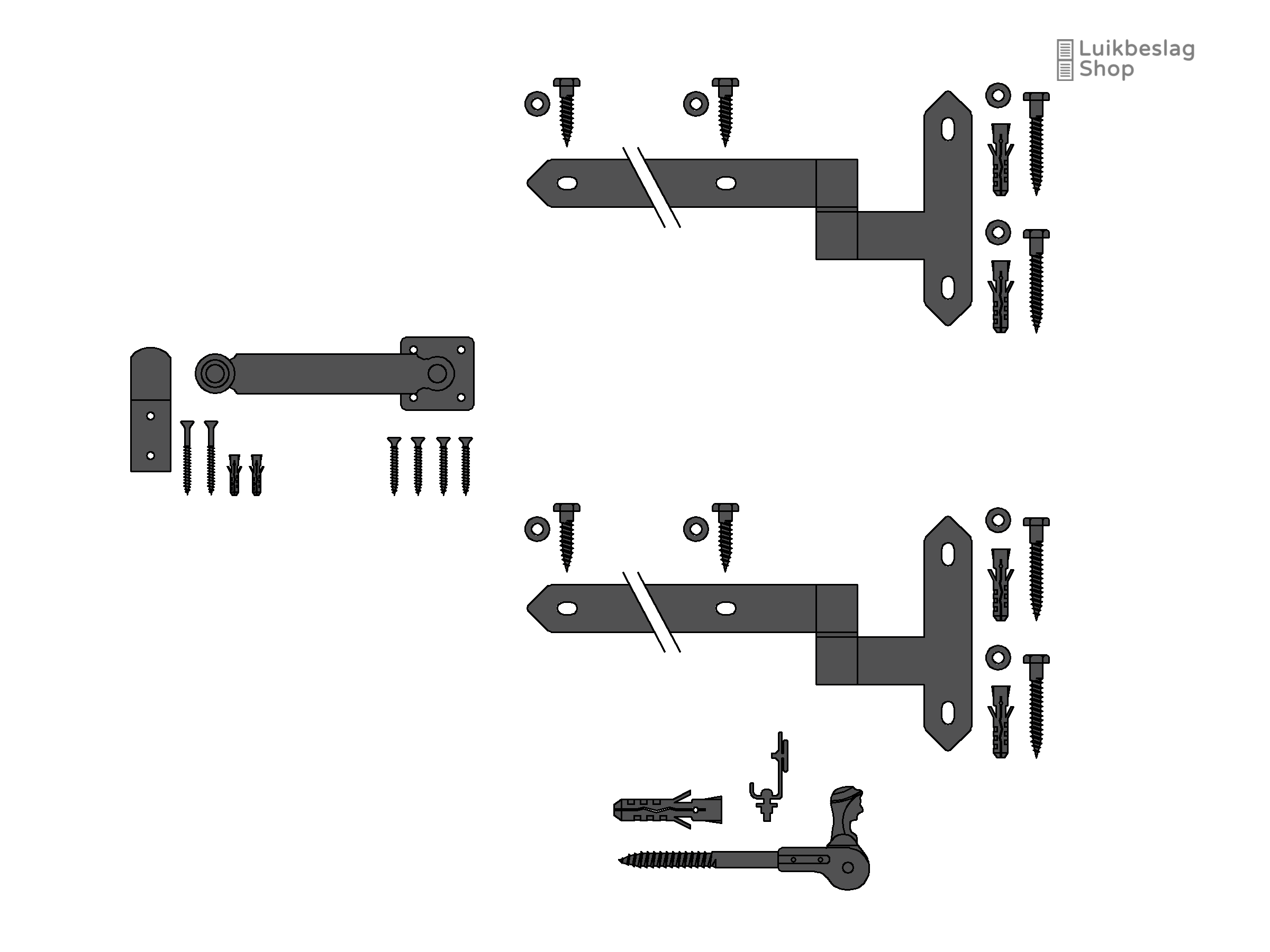 Wilt u andere luikvastzetters, luiksluitingen, T hengen in plaats van staarthengen of 3 draaipunten in plaats van 2? Gebruik dan de keuze hulp in de webshop.