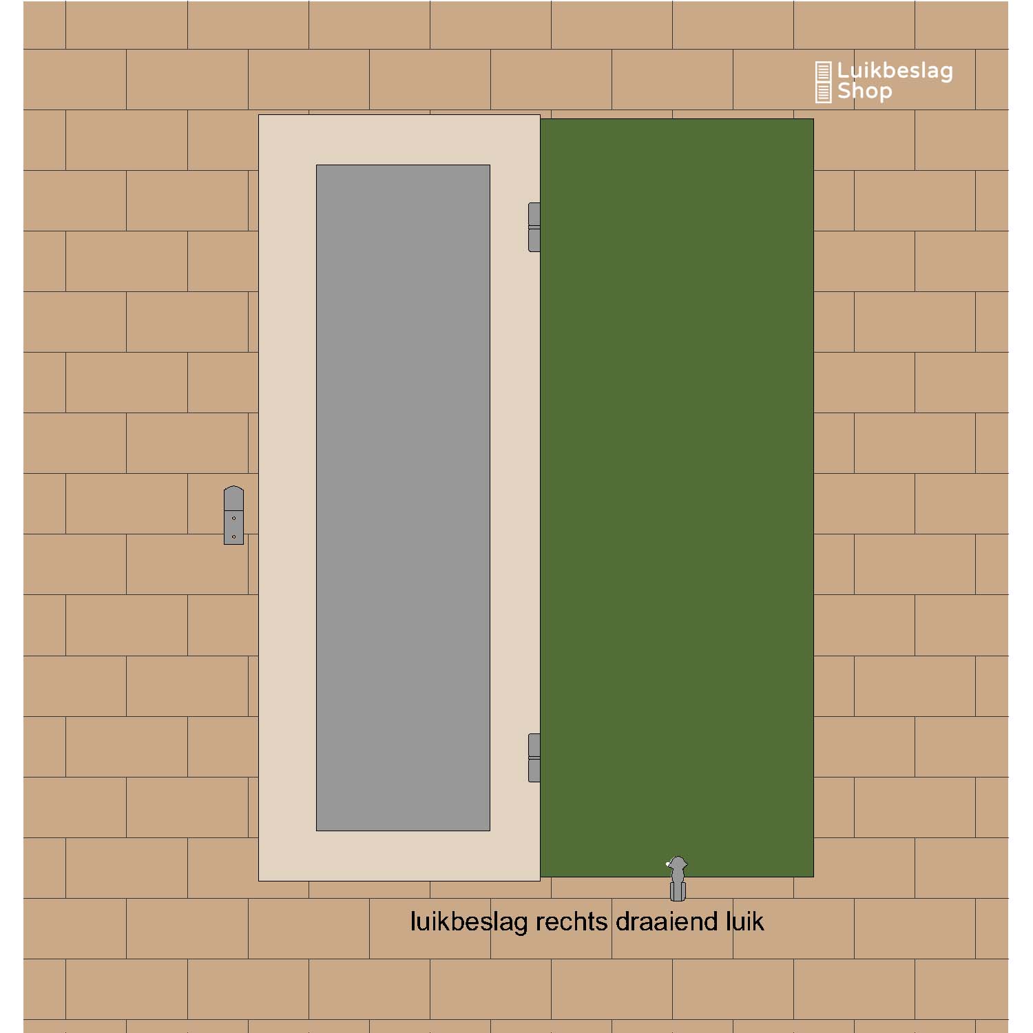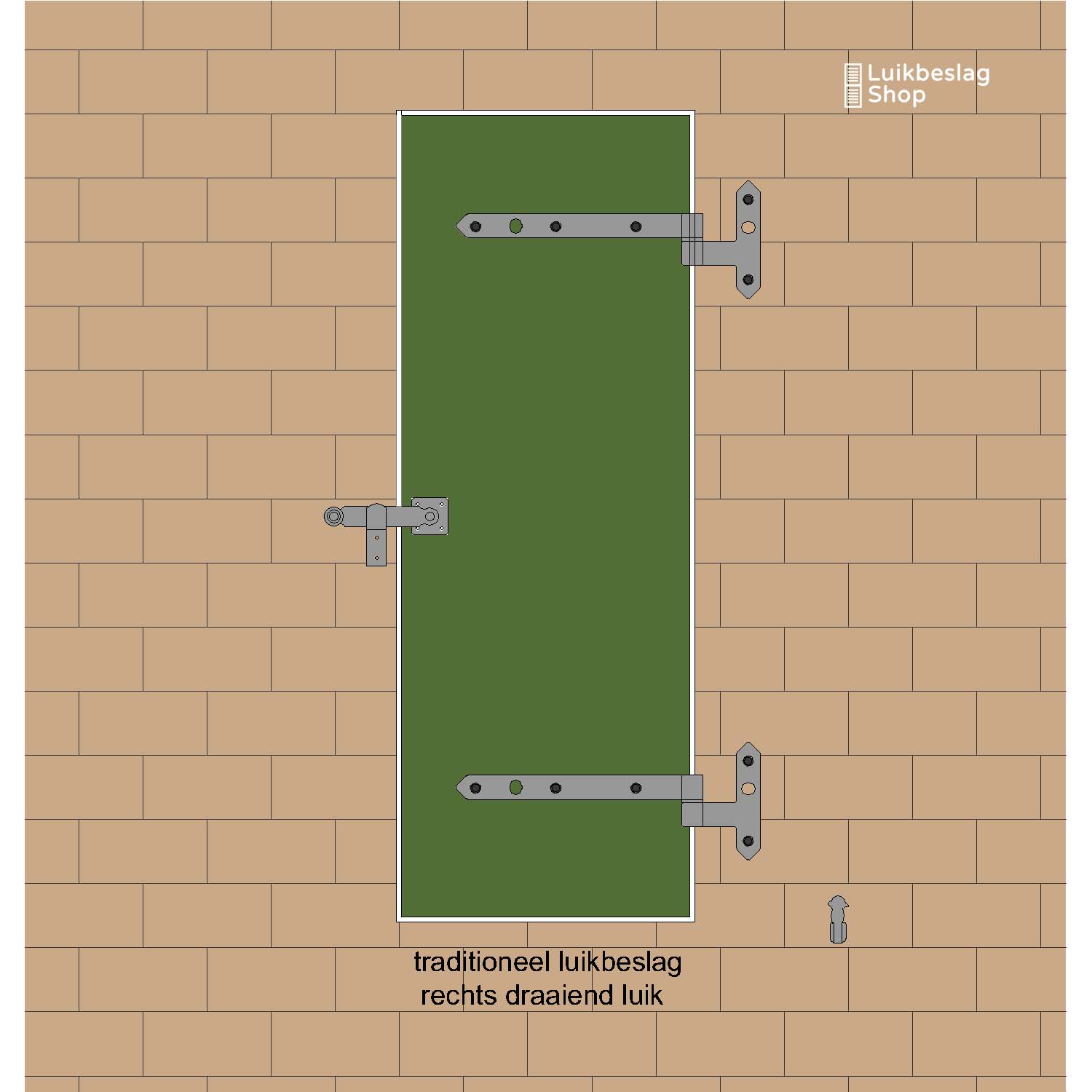 set traditioneel luikbeslag enkel luik staartheng rechtsdraaiend.