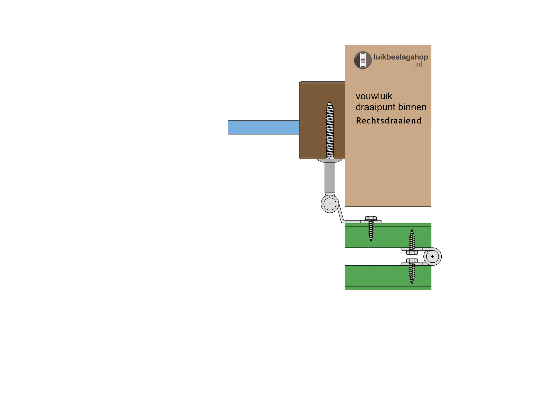 De traditionele scharnieren zijn te gebruiken bij vouwluiken. De montagegaten zijn 9mm. Er kunnen 4 stuks M8 houtdraadbouten worden gebruikt om de scharnieren te monteren. Om beschadigingen van de poedercoat te voorkomen is het aan te bevelen een kunststof beschermringetje te gebruiken onder de houtdraadbout. De scharnieren zijn door de vorm van de gaten enkele millimeters verticaal te verstellen.