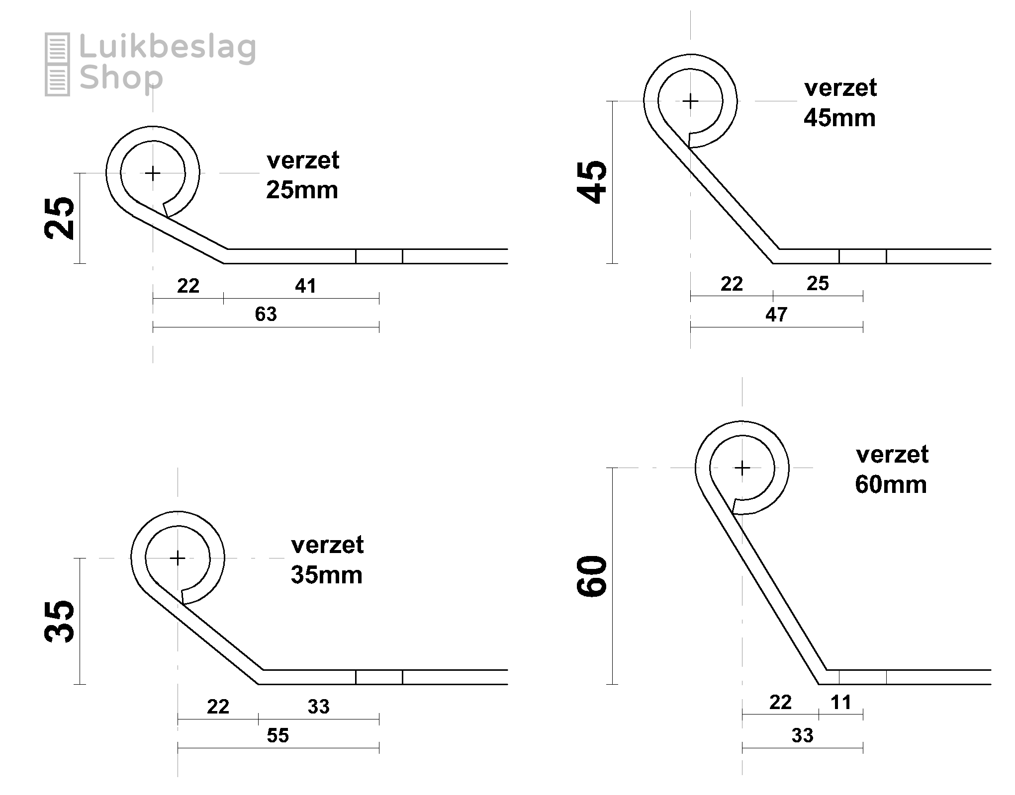 Naast de standaard verzetten kunnen wij ook andere verzetten maken en leveren.