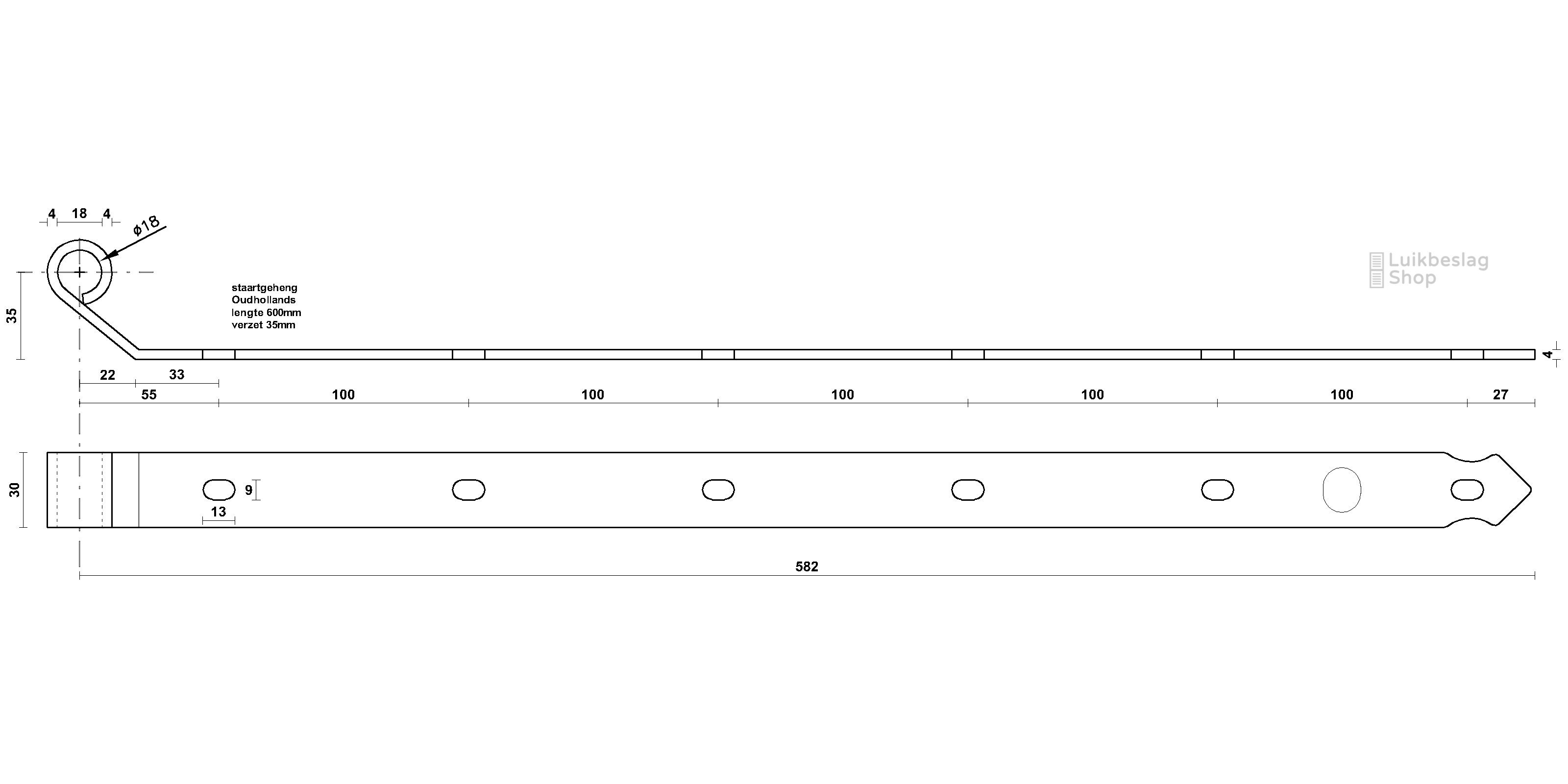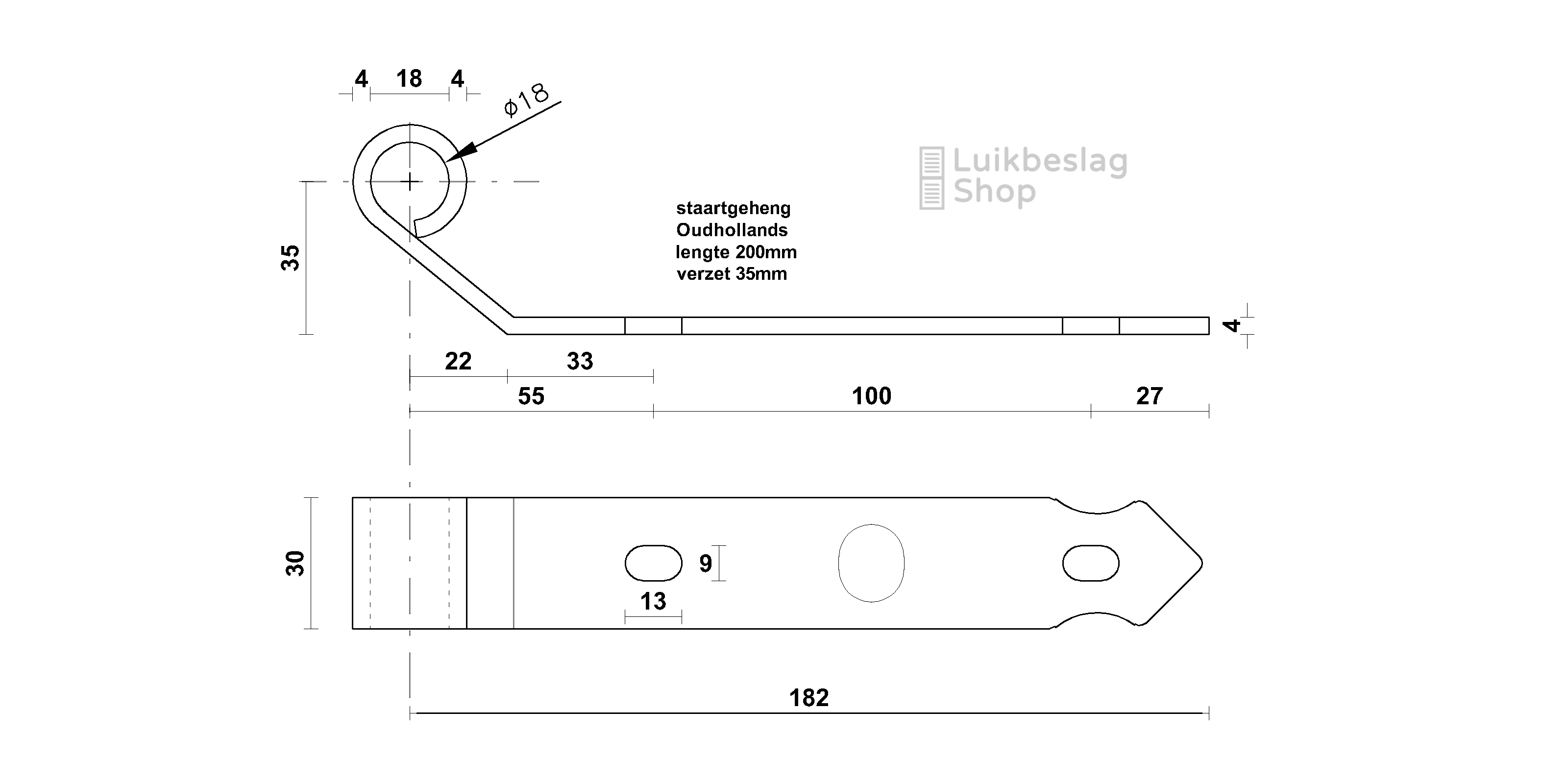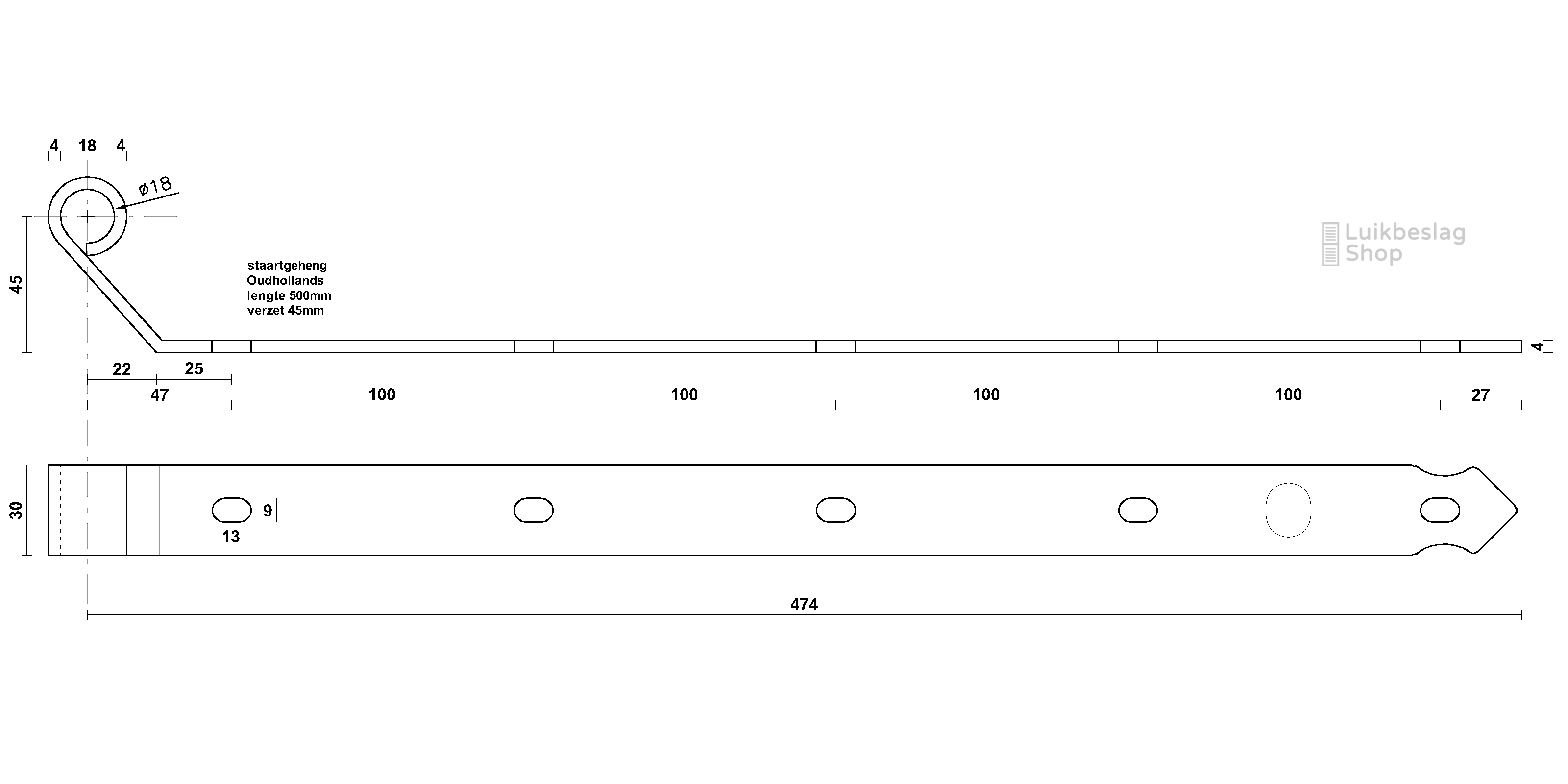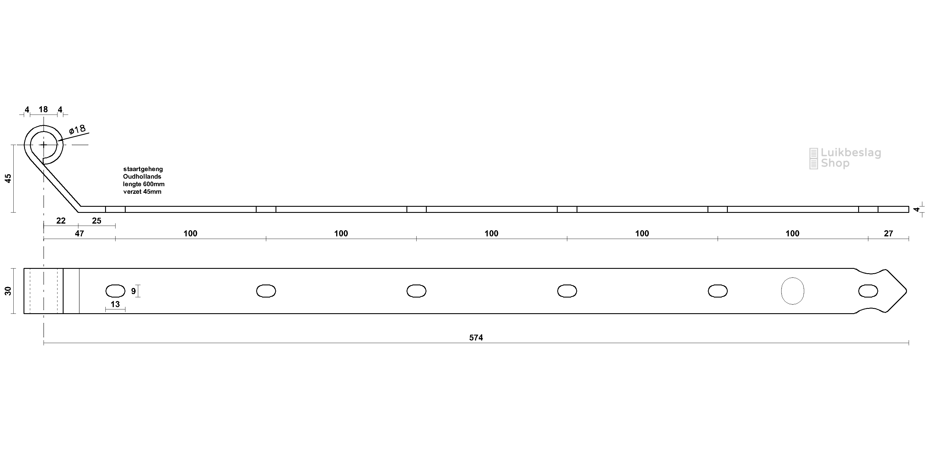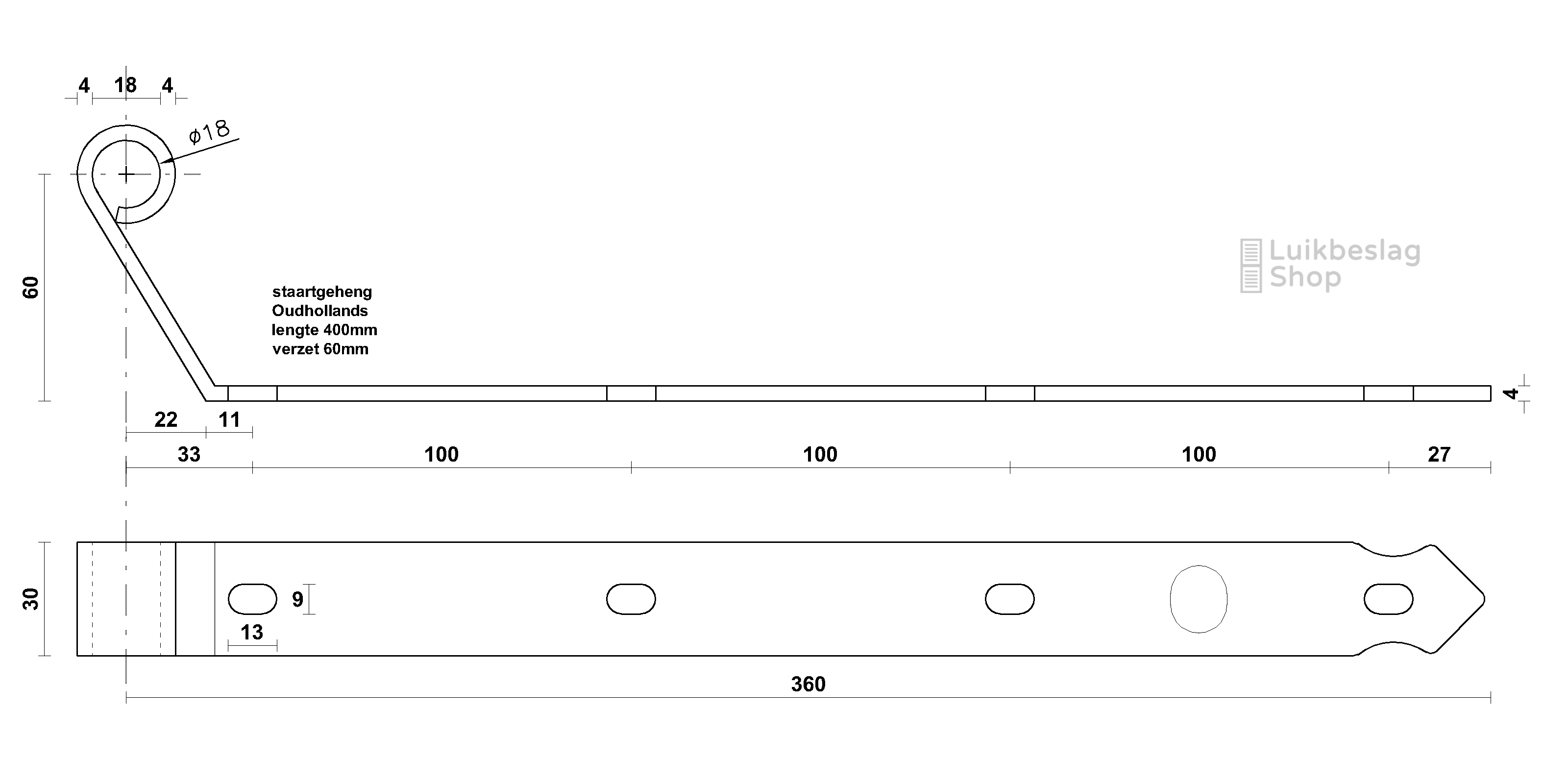De montagegaten van deze Oudhollandse staarthengen zijn 9mm. Er kunnen M8 houtdraadbouten of slotbouten worden gebruikt om de hengen te monteren.