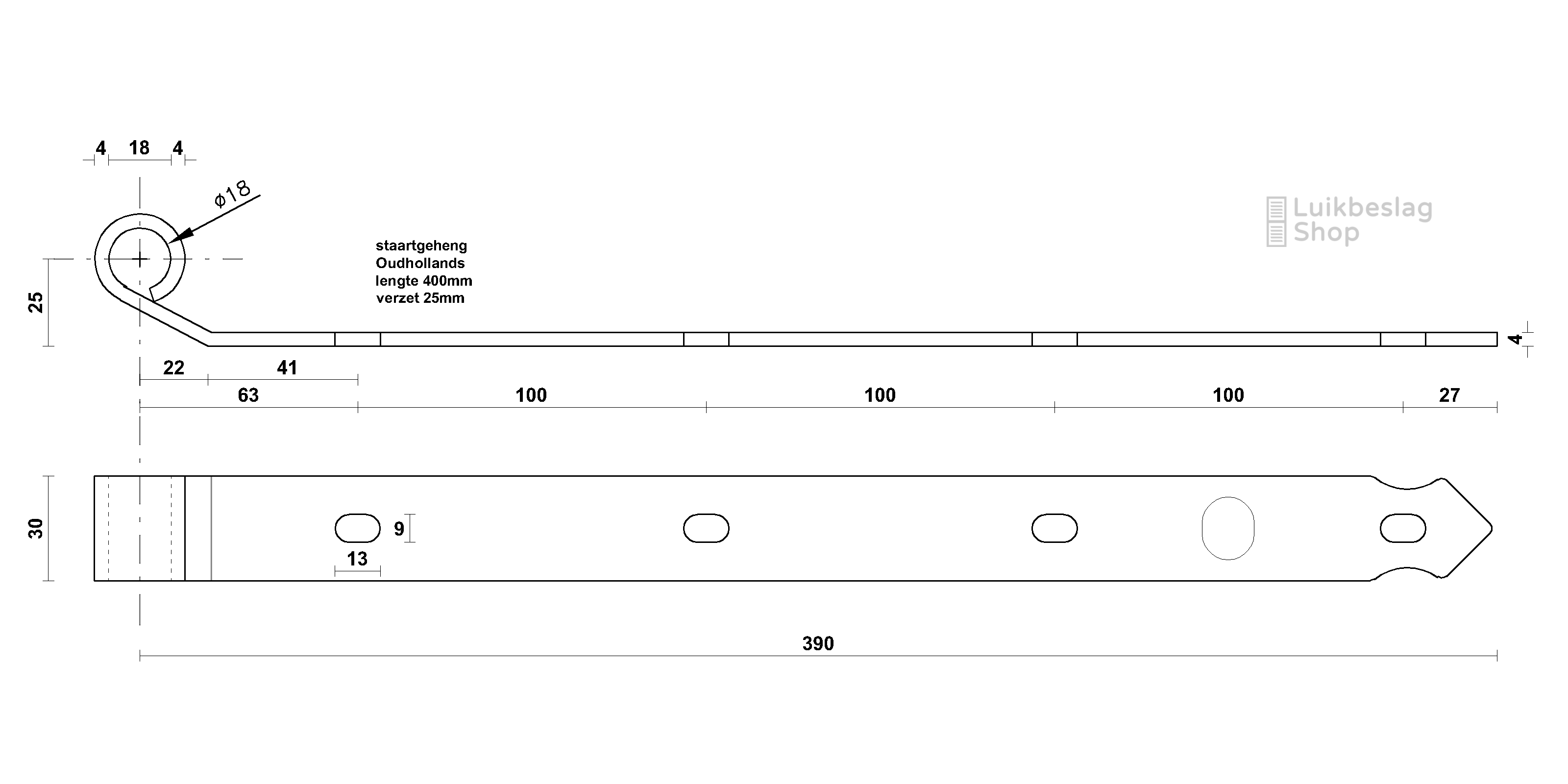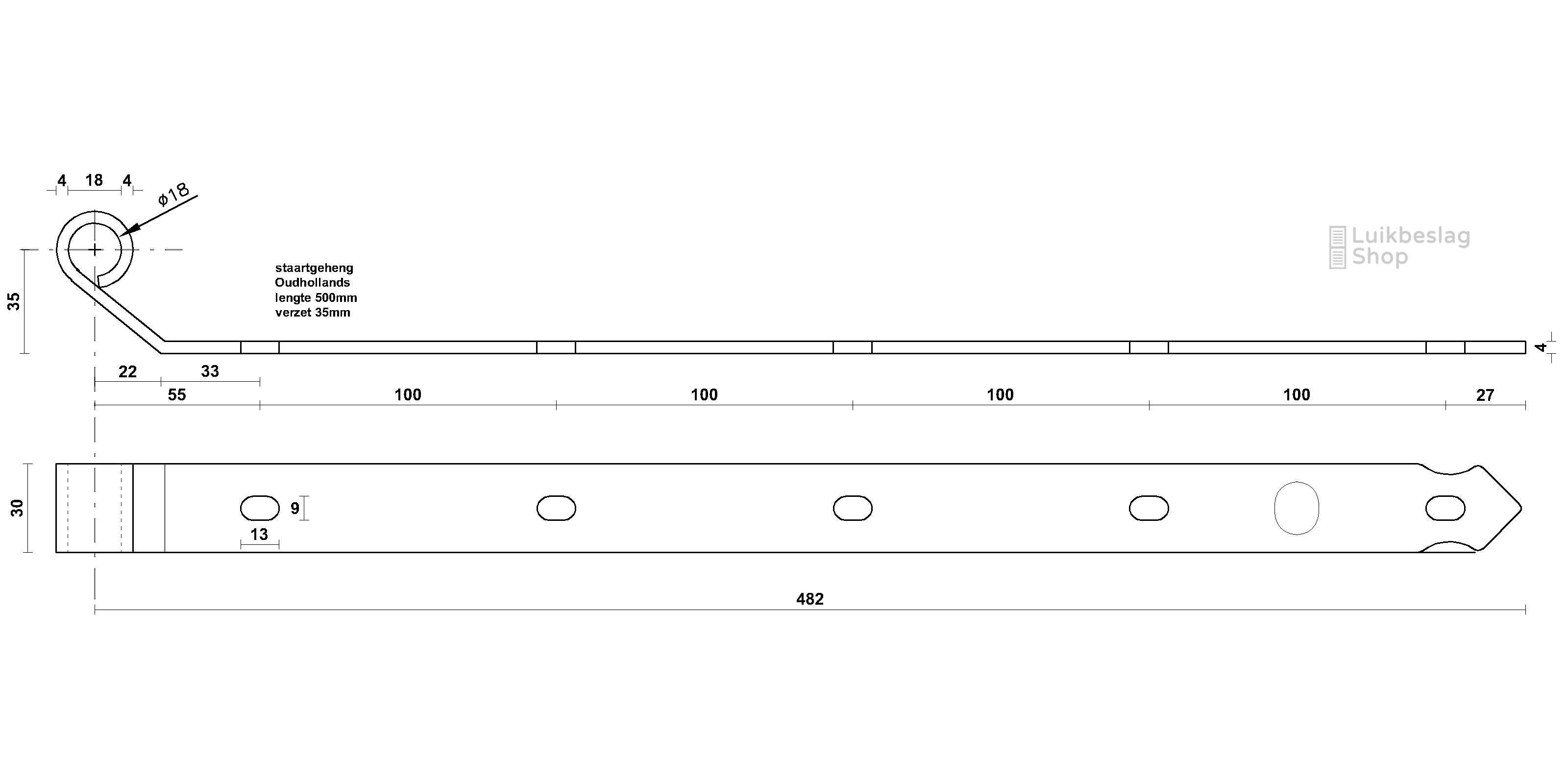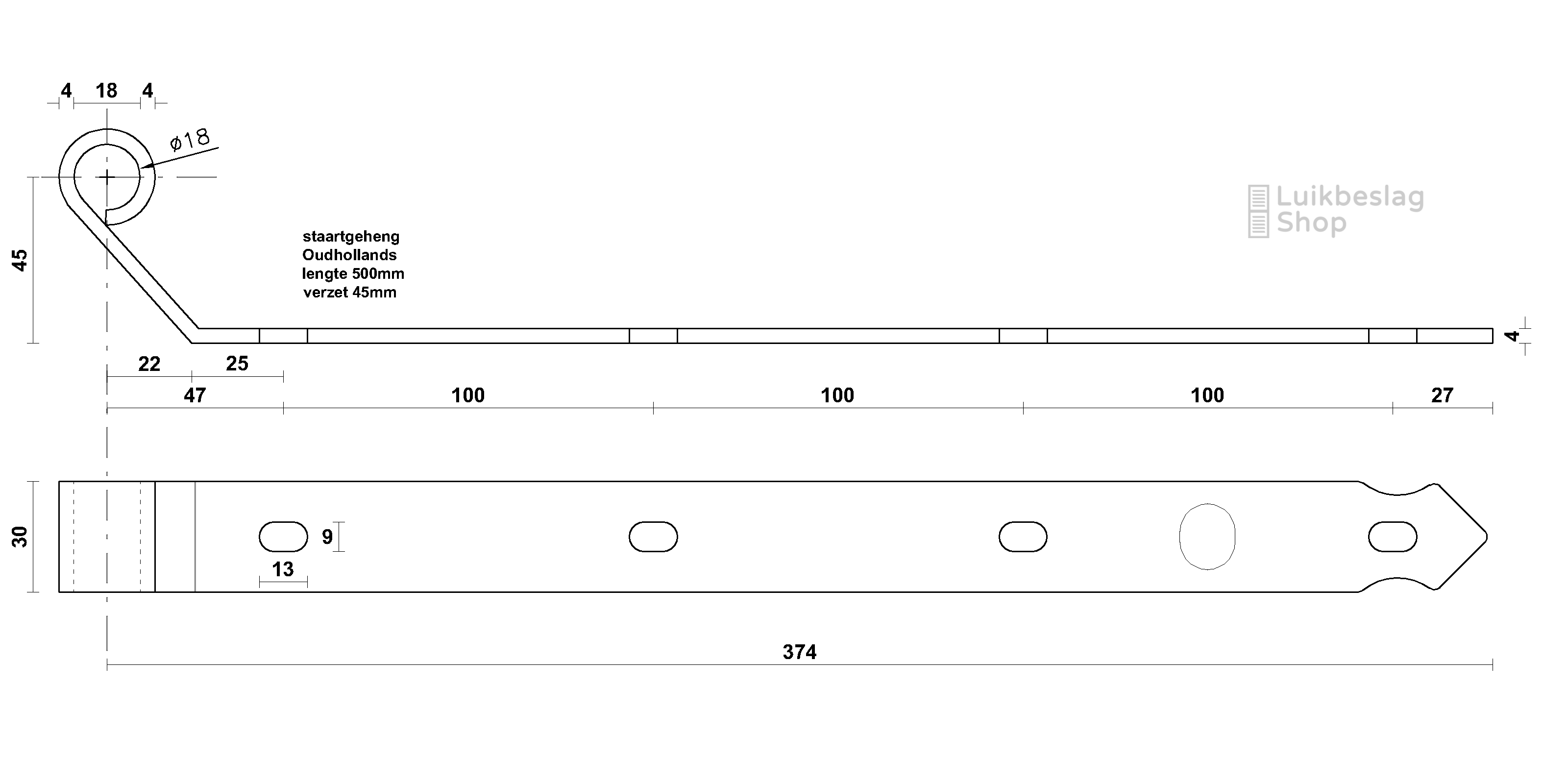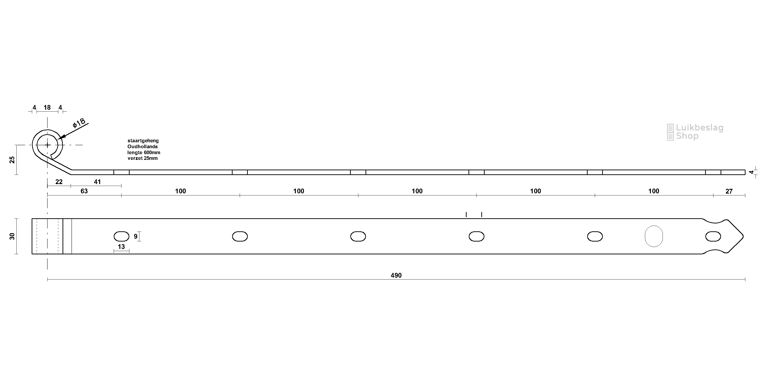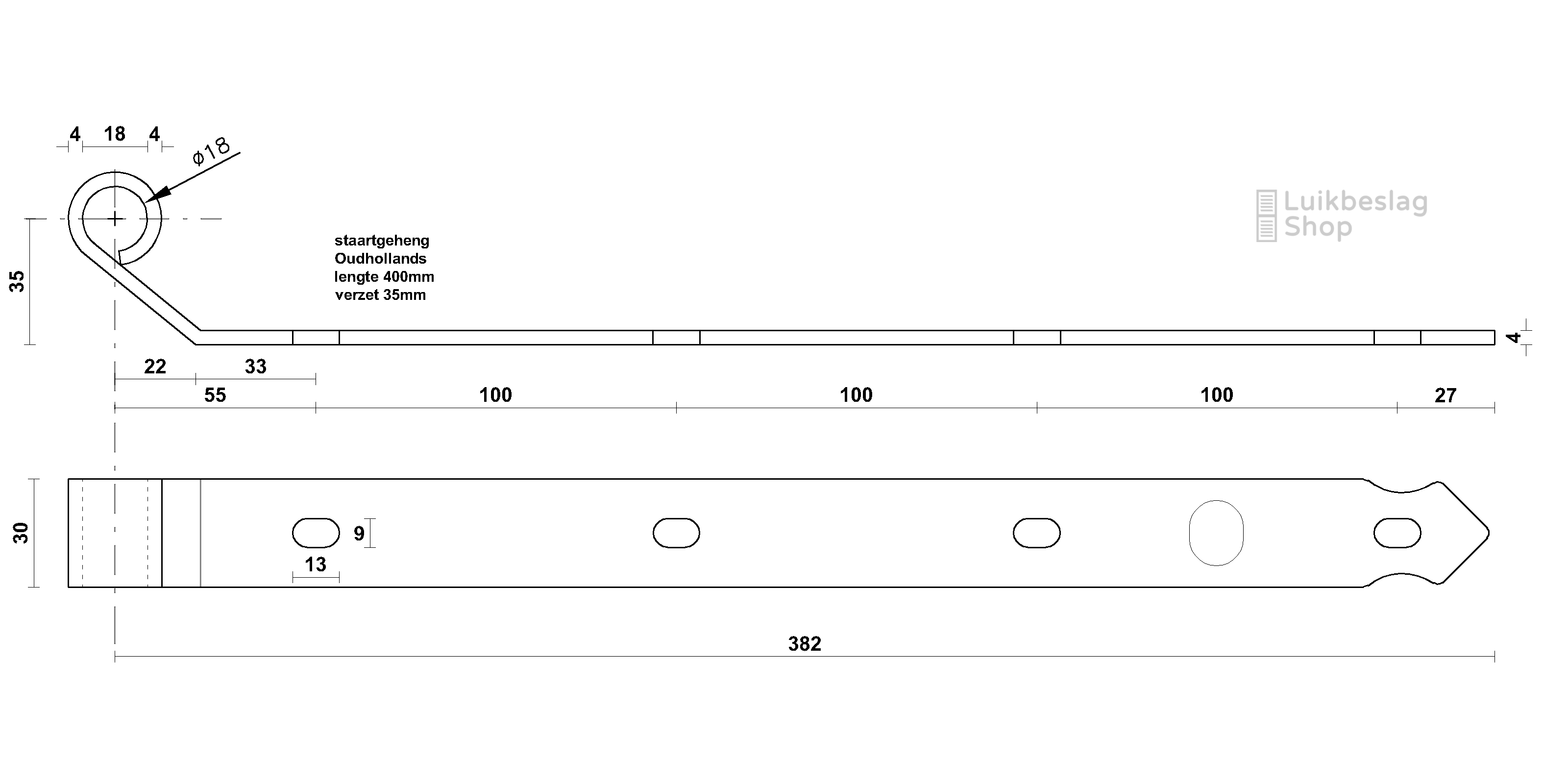 De montagegaten van deze Oudhollandse staarthengen zijn 9mm. Er kunnen M8 houtdraadbouten of slotbouten worden gebruikt om de hengen te monteren.