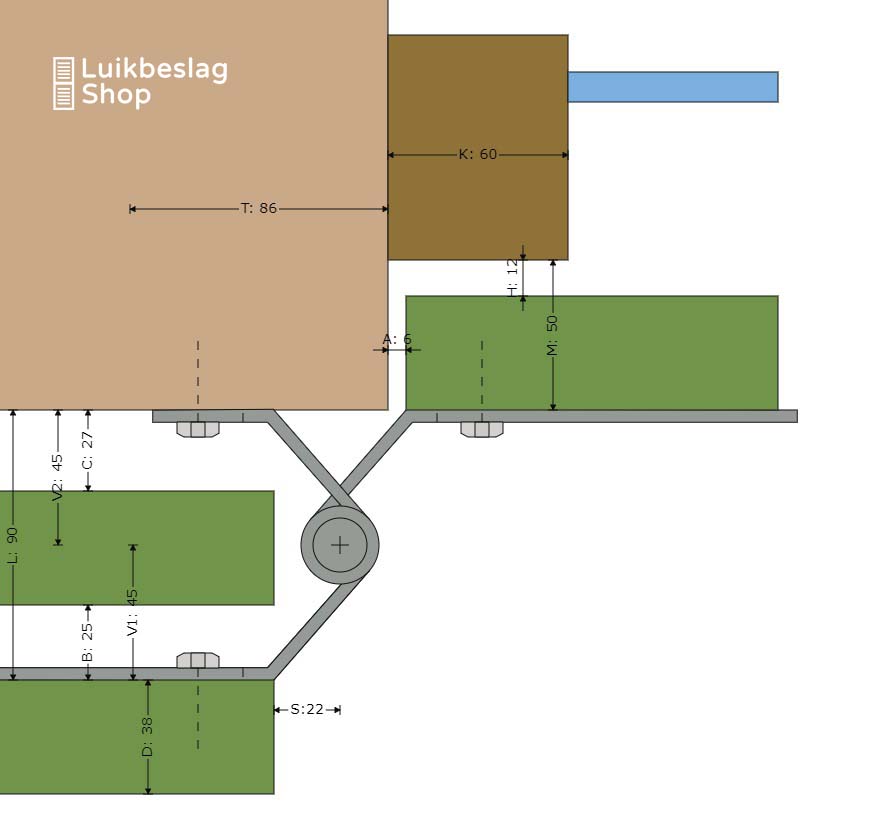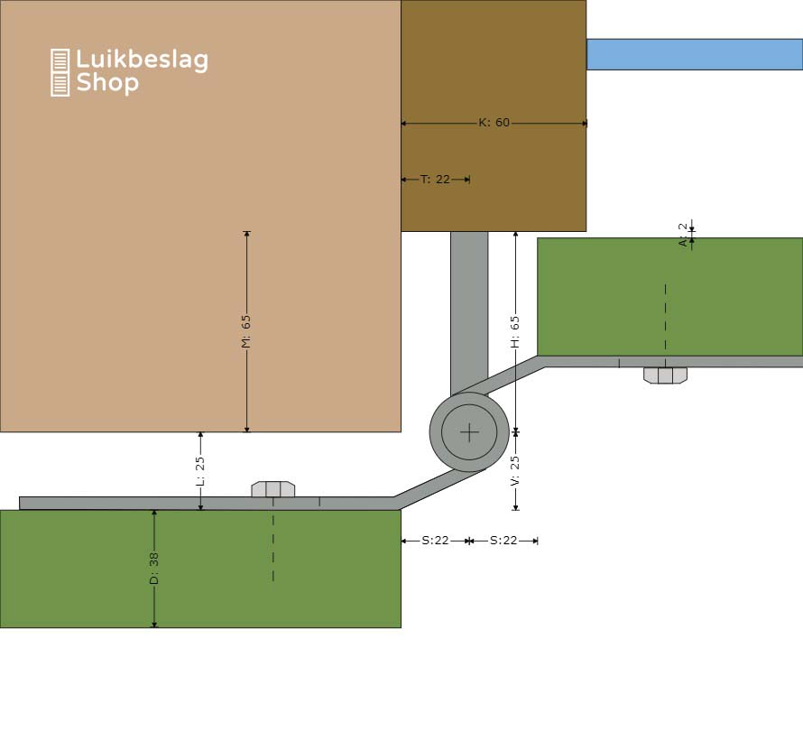 Om beschadigingen van de poedercoat te voorkomen is het aan te bevelen een kunststof beschermringetje te gebruiken onder de houtdraadbout of slotbout. De hengen zijn door de vorm van de gaten enkele millimeters horizontaal te verstellen. Er wordt meestal 2/3 deel van de breedte het luik als lengte voor het heng aangehouden.