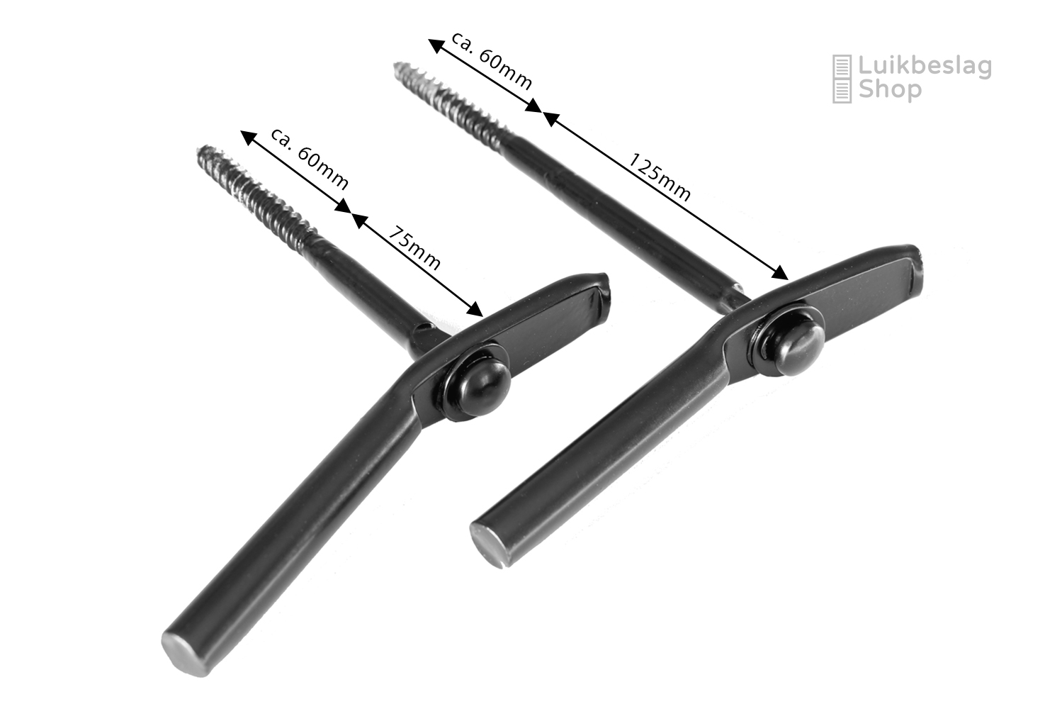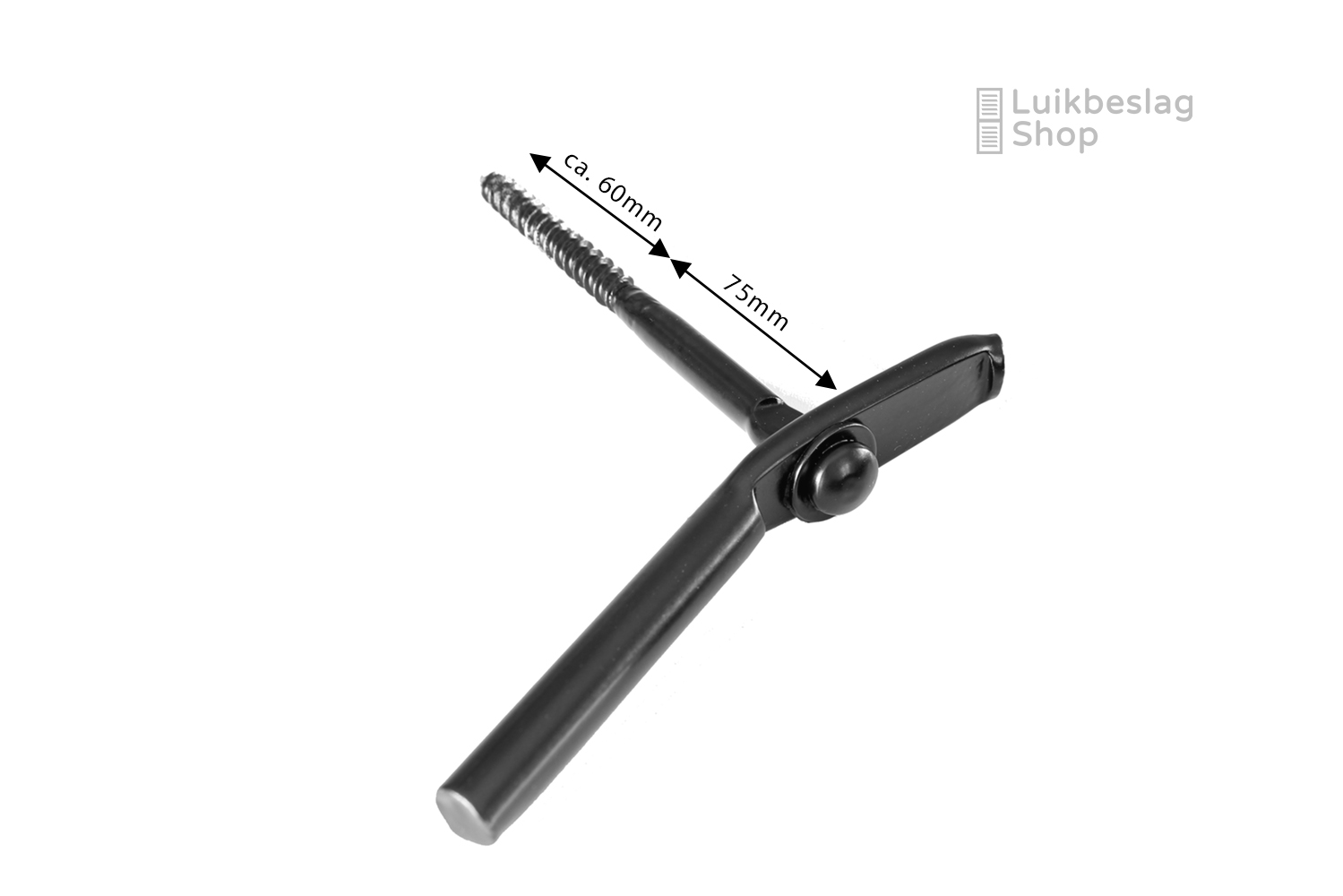 Meer informatie: Deze Hollandse luikvastzetter kan alleen aan de onderkant van het luik worden geplaatst. De lengte is de bruikbare lengte exclusief de schroefdraad.