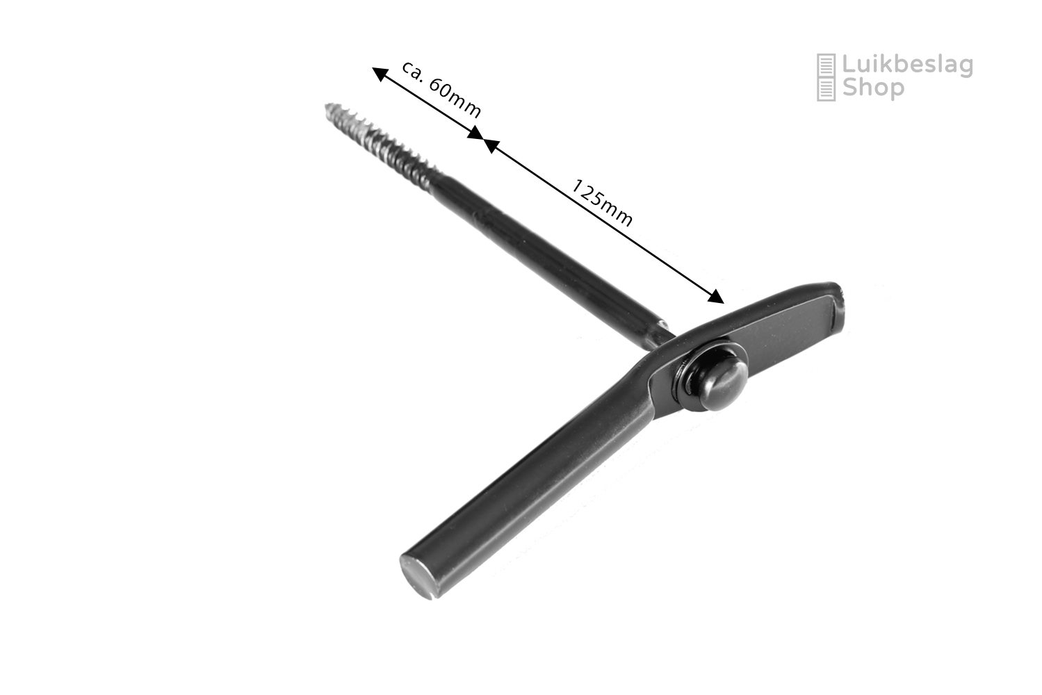Deze Hollandse luikwervel kan alleen aan de onderkant van het luik worden geplaatst. De lengte is de bruikbare lengte exclusief de schroefdraad.