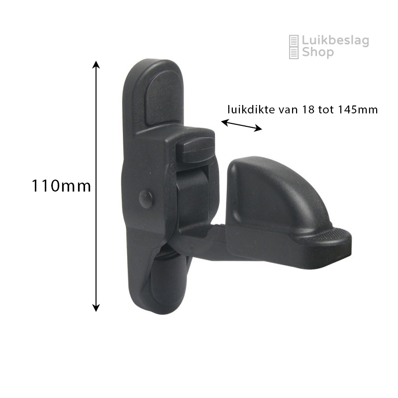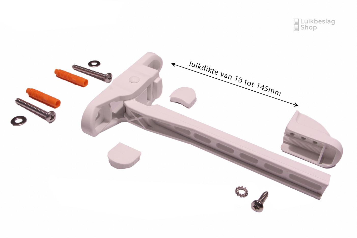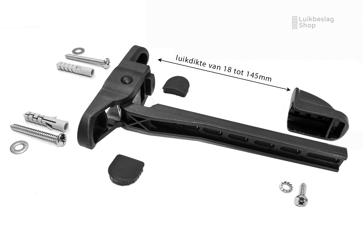 De luikdikte kan variëren van 18mm tot 145mm. De vastzetter is makkelijk in te korten met een (ijzer)zaagje.
