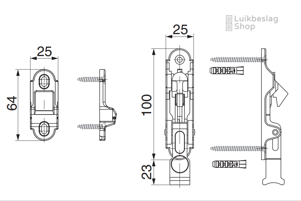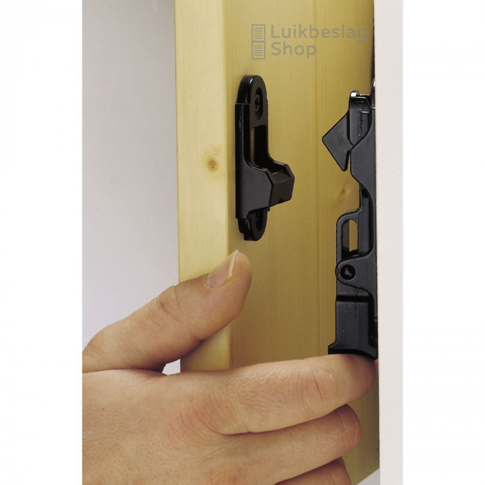 De vastzetter heeft 25mm ruimte nodig achter het luik. De afstand kan worden vergroot door vulplaatjes onder de vastzetter te plaatsen. De verborgen luikvastzetter kan ook dienen als (vouw)luikkoppeling. Het is belangrijk de 2 delen van de vastzetter op goede hoogte t.o.v. elkaar te monteren. Zie daarvoor de maten op de afbeelding in de galerij. Als u veel luikvastzetters gaat monteren kunt u een boormal gebruiken. Montagemateriaal: De vastzetter wordt geleverd met pluggen en schroeven (zwart verzinkt). Voor afmetingen zie de foto in de galerij. Informatiecentrum. Kijk voor meer informatie kijk in ons informatiecentrum hier.