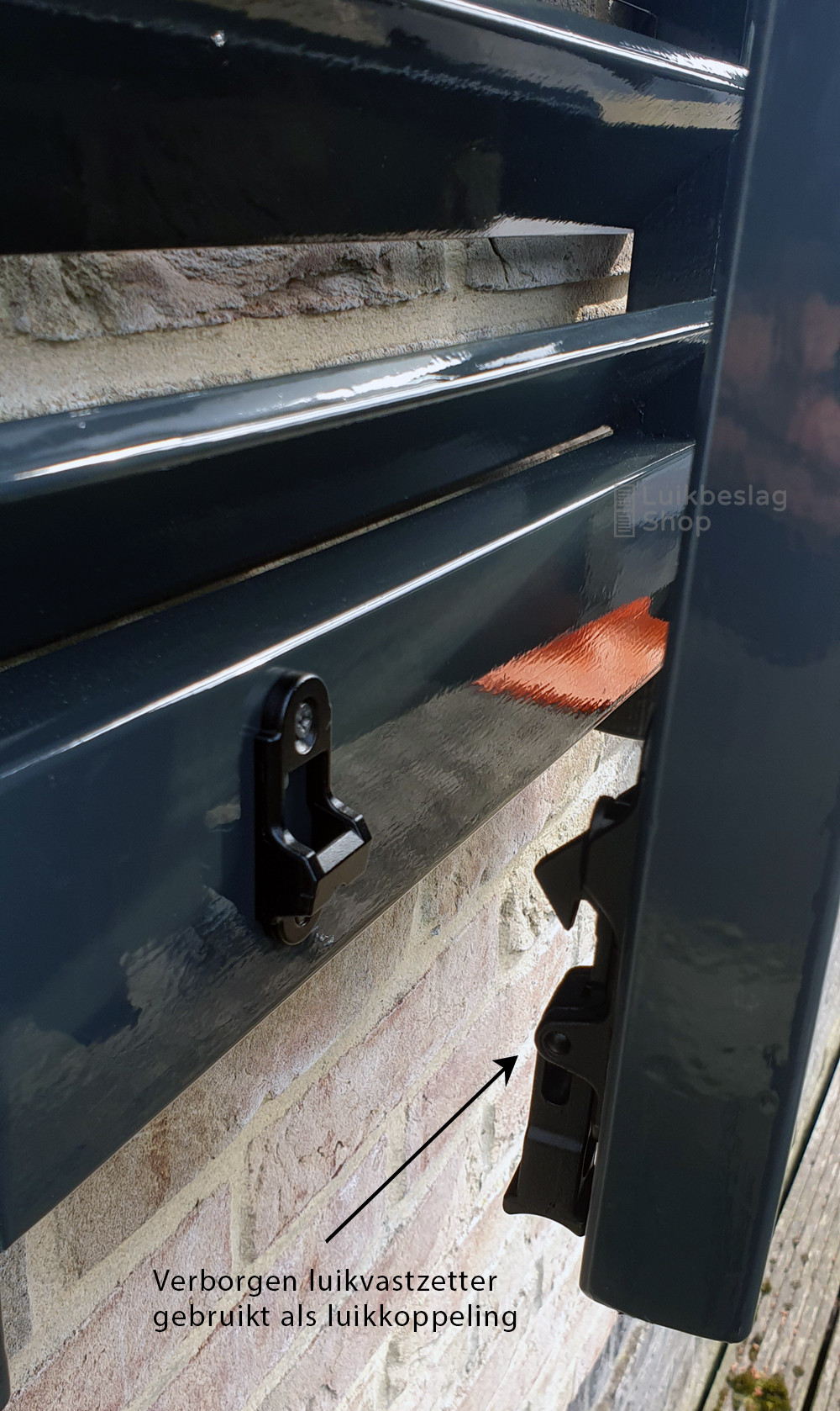 Luikvastzetter om het luik vast te zetten aan de onderzijde of aan de zijkant van het luik. Deze luikvastzetter is rammelvrij.
