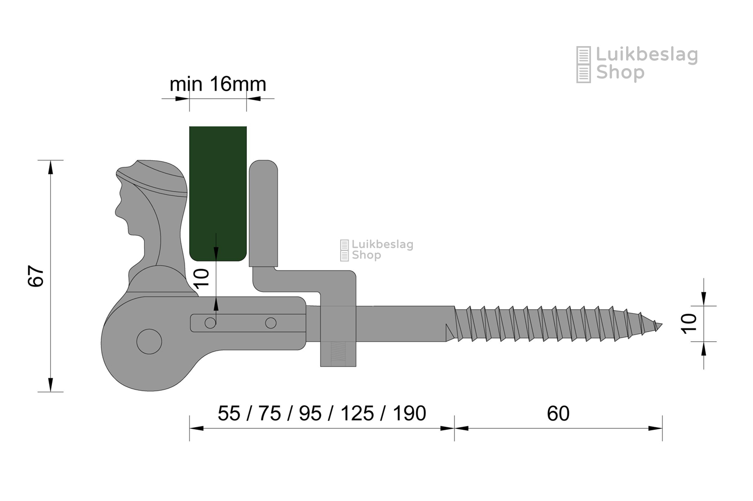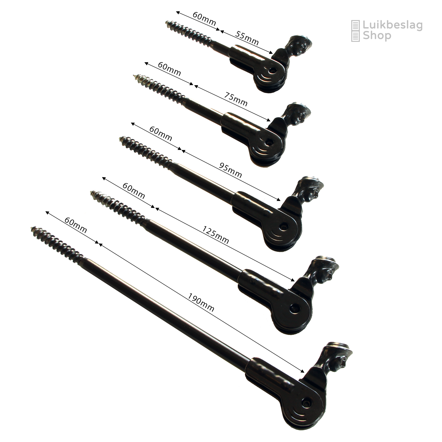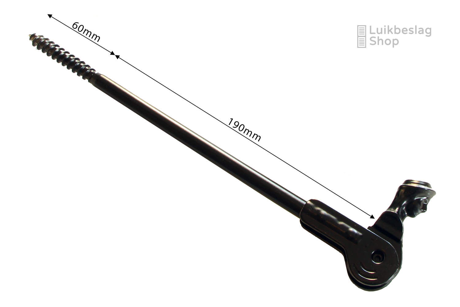 Meer informatie: Deze luikvastzetter kan alleen aan de onderkant van het luik worden geplaatst. De lengte is de bruikbare lengte exclusief de schroefdraad.