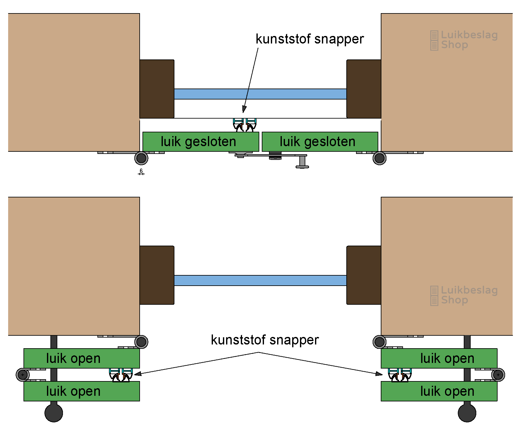 Snapper of afstandhouder voor bijvoorbeeld vouwluiken. Ook te gebruiken als vastzetter tegen het kozijn. Kleur wart en wit.